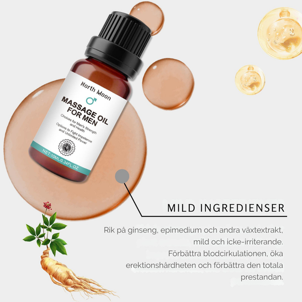 North Moon massageolja förbättrar blodcirkulationen och libido, ger starkare erektioner och ökar energin för långvarig intimitet och trygg vård.